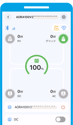 - AC入力 / DC入力:コンセントやソーラーパネルからの充電状況