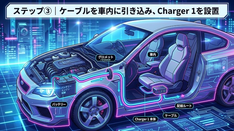 Charger 1はシガーソケットに差すだけの製品ではなく、車両バッテリーへ配線する必要があります。つまり、手軽さはシガーソケット充電より一段上の難易度です。