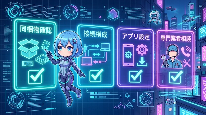 対応機種ではない、接続構成が条件に合っていない、ケーブルの接続不良、設定やファームウェアの確認不足などが原因として考えられます。まずは最新の対応条件と接続構成を見直すのが近道です。